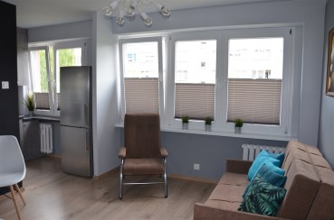 Oferuję do wynajmu komfortowe, w pełni wyposażone mieszkanie o powierzchni 35,70 m2. Mieszkanie znajduje się na 1 piętrze w bloku z cegły.Miejsca parkingowe.Z przedpokoju osobne wejście do salonu połączonego z aneksem kuchennym, sypialni i łazienki razem z  wc.W pokojach na podłogach panele podłogowe, ściany gładzie gipsowe.Kuchnia nowocześnie umeblowana, wykończona glazurą.W łazience na wyposażeniu kabina prysznicowa,pralka.Na wyposażeniu kuchni  zabudowa kuchenna,kuchnia gazowa, piekarnik elektryczny, lodówka, mikrofalówka.Mieszkanie estetyczne, zadbane, wykończone w stonowanych , dopasowanych do wnętrz kolorach.Lokalizacja mieszkania blisko centrum.Mieszkanie idealne dla pary lub dla firmy.Kaucja zabezpieczająca zwrotna.Koszt wynajmu mieszkania to 1650 zł plus czynsz do Spółdzielni 550 zł i zużycie mediów ( prąd, gaz).Mieszkanie dostępne od maja.